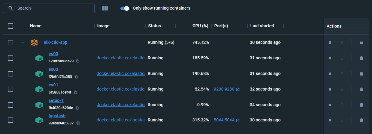 docker compose -f ./docker-compose.yml -p elk-cdc-app up -d해당 명령어로 실행 시, setup이 돌고 ssl를 갱신&생신 이후 es node 가 활성화 되며 뒤이어 kibana가 활성화 된다.