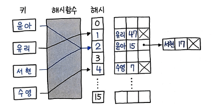 - 같은 인덱스가 있다면 연결 리스트로 연결한다.